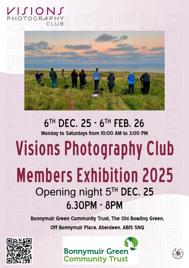 Visions is having a photography exhibition at Bonnymuir Green from December 6th to February 6th, 2026. There is also a launch event on 5th December to which you are cordially invited.