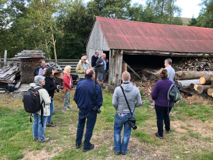Our summer outdoor excursions programme took us to the Forest of Birse near Finzean for a look at the water powered 19th century mills. I’d visited these circa 7 years ago as part of the photography course at Grays, and knew it would be good if we could arrange access to the buildings. Guy Haslam, the chairperson of the Birse Community Trust was extremely helpful and arranged to meet us at 7pm outside the mill. The mill is still in operation on a part time basis and manufactures fence posts, brooms and wooden kitchen implements like spurtles and dough rollers. In the past it used to make wooden stoppers for herring barrels.