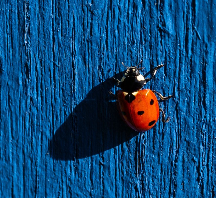 The rough nature of the surface of the wood and the grooves contrast very well with the smooth and shiny surface of the ladybird. The view along the grooves combined with the carefully adjusted depth of focus add impact and direct the eye to the insect.