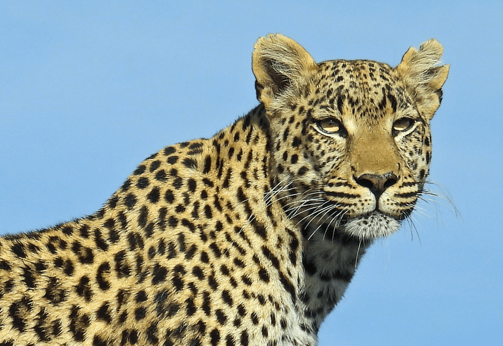 First: Lynda Gordon with a wonderful menacing looking leopard against a blue sky. And yes Lynda did actually travel to Botswana during the challenge dates.