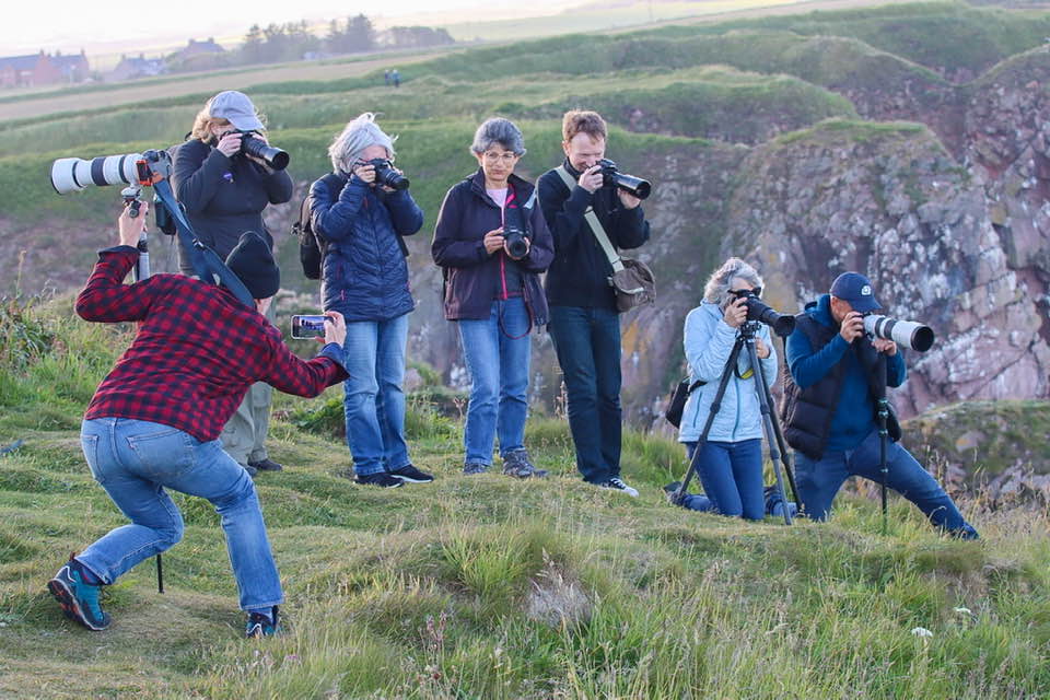 Instead of a cosy evening sitting inside Ruthrieston Community Centre, Visions had organised an outing to Bullers of Buchan to try and photograph the Puffins and others inhabitants of the cliffs. The puffins are far outnumbered by the razorbills, kittiwakes, fulmars, shags and guillemots along with herring gulls and black-backed gulls. They nest in small burrows in the grassy top of the cliffs, which can make it surprising hard to get a decent photo of them, unless you are prepared to get right to the edge and use a pretty long lens.