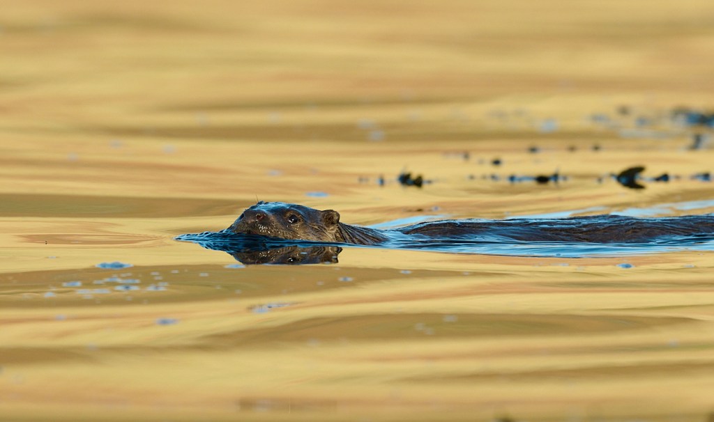 Otter – A fabulous encounter (one of many that day) with an otter in beautiful golden autumn light creating a sea of gold.
