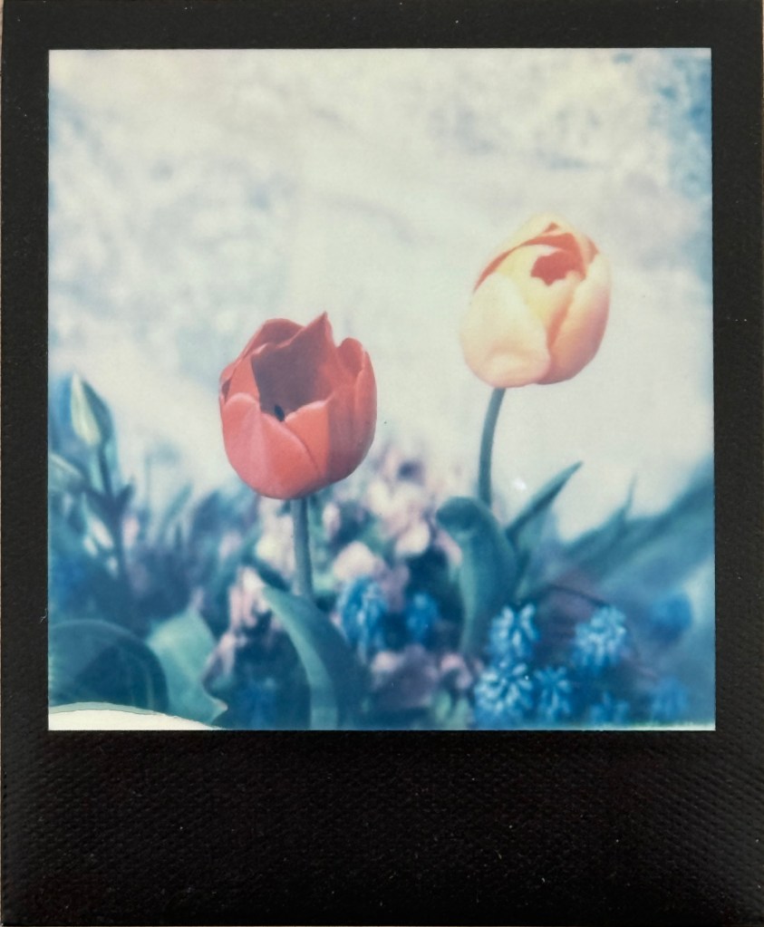A few prints made on early Impossible Project SX70 film. Less saturated colours, more pastel like, but with its own distinct character. Depending on the temperature the colours can vary from pink to blue, all part of the rather expensive fun.