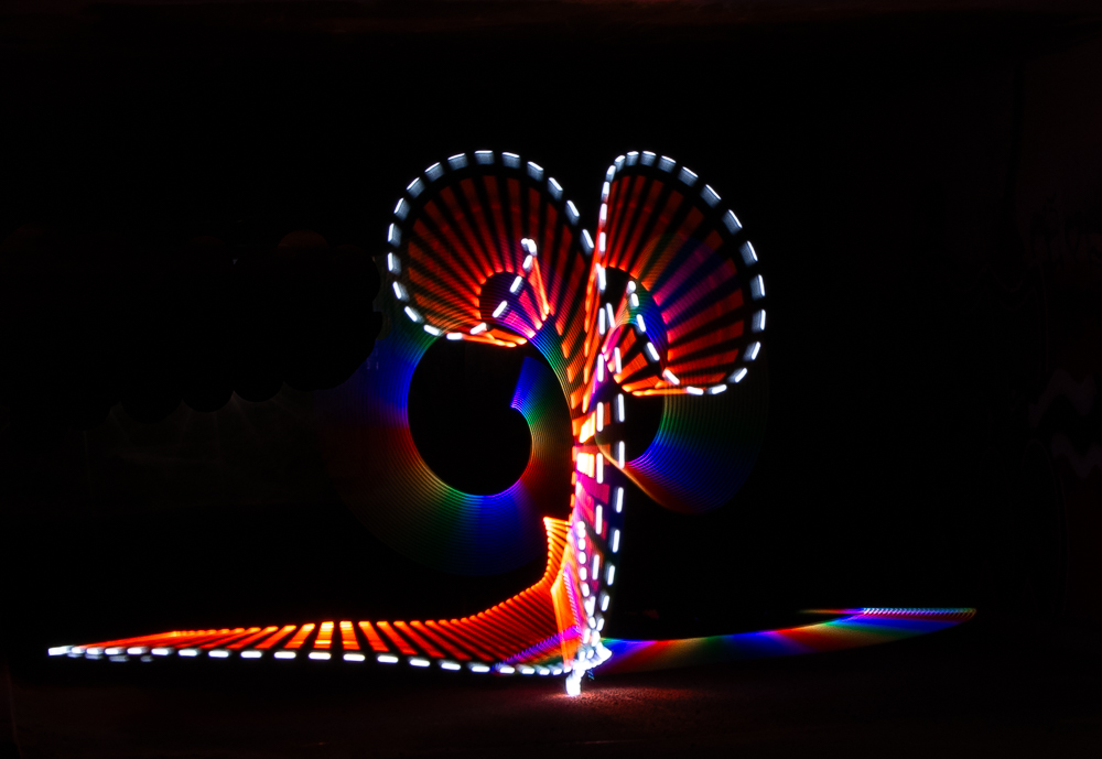 Fancy LED light sabres are used to create elaborate shapes during 30 second and longer exposures.