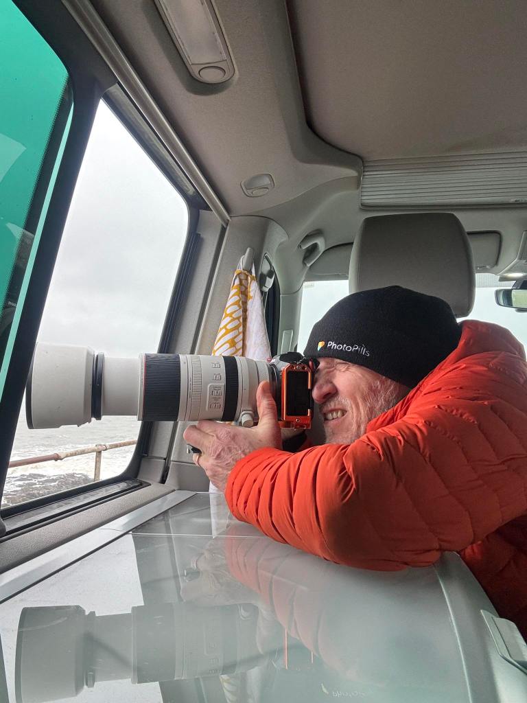 Shooting the waves: Dave Lynch in action from the comfort of his camper van.