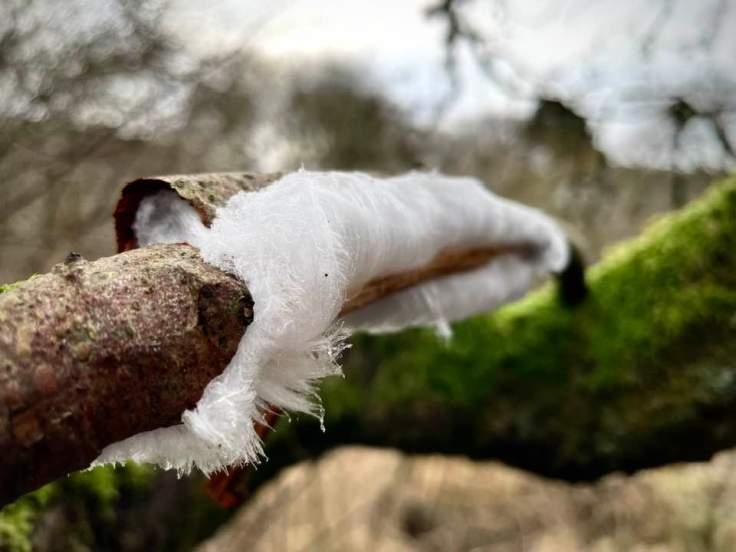 Kirsty Russell found this amazing hair ice on a dead branch of a tree. Caused by a fungus apparently.