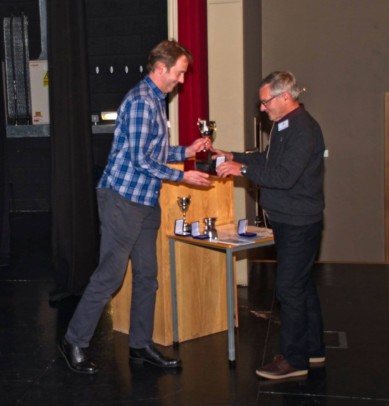 Euan Fraser receiving the Grampian Eye winners cup from Peter Paterson